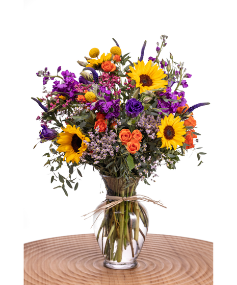 Celebrate spring with a Fresh Start! Featuring bright sunflowers, spray roses, lush greenery, and fun accents of craspedia (billy balls), this exclusive flower arrangement is the perfect way to wish someone a happy spring. It’s perfect for, birthdays, anniversaries, and for no reason at all - Just Because! Express your love and friendship with fast local flower delivery near you.