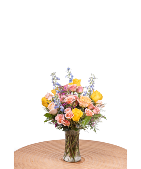 The Frutta arrangement is an absolute stunner! These roses are perfect for adding a touch of elegance to any occasion, whether it be a birthday, anniversary, or promotion. The yellow and peach colors are gorgeous and will surely stand out in any room. This arrangement is sure to put a smile on anyone's face and is the perfect way to show your loved ones how much you care. Order a Frutta flower arrangement today!