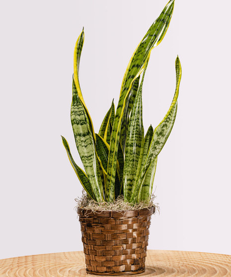 Easy, elegant and nearly indestructible, our Snake Plant in a basket brings timeless greenery into any space. Known for its striking upright leaves and incredible hardiness, the Snake Plant is a favorite for homes and offices alike. It thrives in a range of lighting conditions and requires minimal care, making it perfect for plant beginners and seasoned plant lovers alike. Arranged in a stylish woven basket (style may vary based on availability), this gift-ready plant adds texture and life to any room.